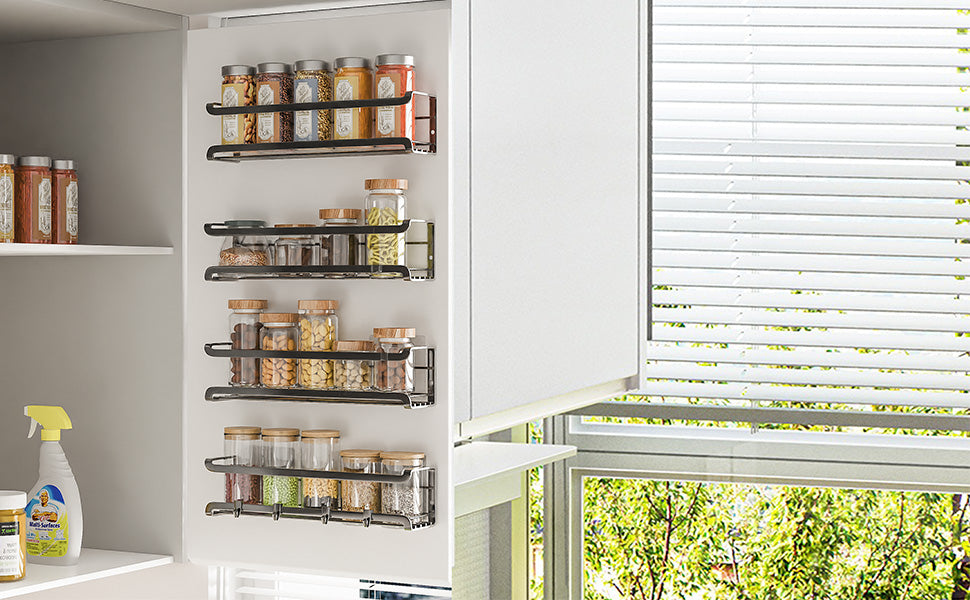 Definitely. The slim profile fits inside cabinets, on the back of pantry doors, or even on the side of your fridge if using adhesive hooks.